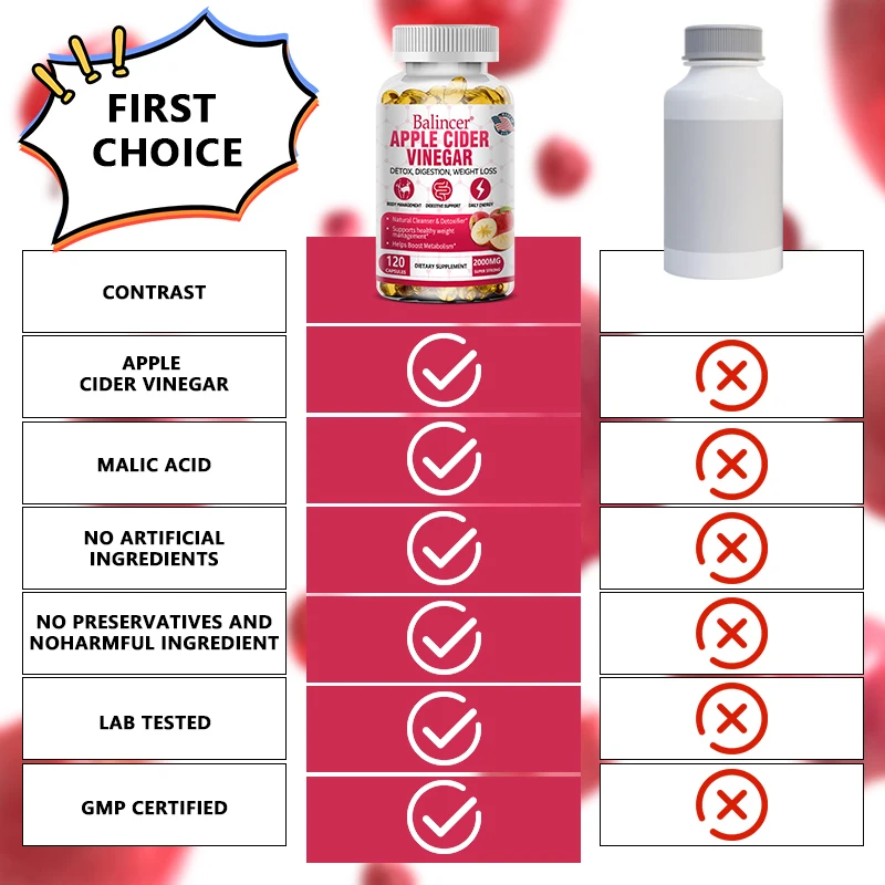 Balincer Apple Cider Vinegar Capsules – Healthy Fat Burning, Digestion, Detox & Immune Support Formula (120 Capsules)
